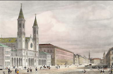 Die Ludwigskirche, Bibliothek Und Ludwigstrasse Zu Muenchen