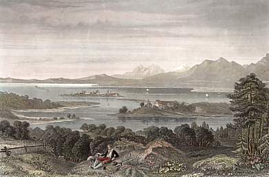 Germany. Original steel engraving drawn by Ainmüller, engraved by j. Poppel. 1846. Very good condition. Hand-coloured. 12,5x10cm. Matted.
