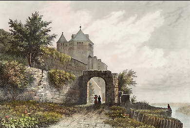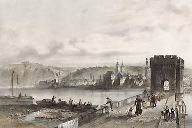 Allemagne. Gravure sur acier, gravée par Hall (d´après W. Tombleson). ca 1840. Bon état. Aquarellée à la main. 16x9,5cm. Montée sous passe-partout.