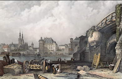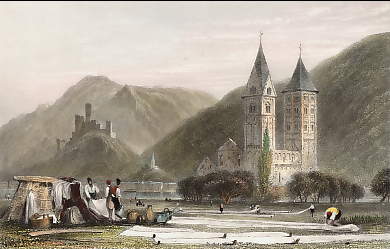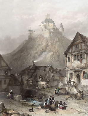 Germany. Original steel engraving drawn by W. H. Bartlett, engraved by E. Brandard. 1842. Good condition. Hand-coloured. 18,5,x12cm. Matted.