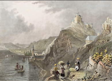 Germany. Original steel engraving drawn by W. Tombleson, engraved by T. Cox. 1832. Very good condition. Hand-coloured. 15x9,5cm. Mounted.