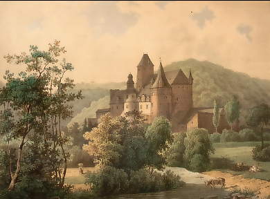 Allemagne. Lithographie de J. D. Harding. 1838. Très bon état. Aquarellée à la main. 24,5x17cm.