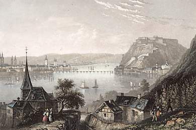 Allemagne. Gravure sur acier, gravée par J. Tingle d´après W. Tombleson. 1832. Très bon état. Aquarellée à la main. 14x10,5cm. Montée sous passe-partout.