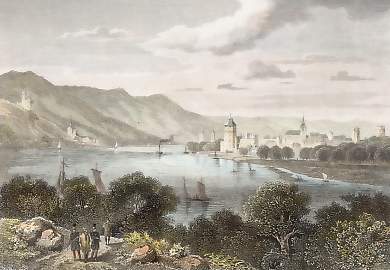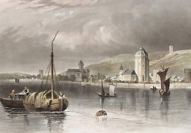 Allemagne. Gravure sur acier, gravée par J. Wix d´après W. Tombleson. 1832. Bon état. Aquarellage ancien. 15x10,5cm. Montée sous passe-partout.