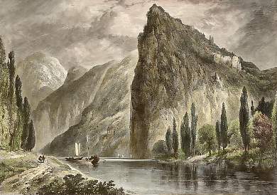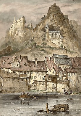 Allemagne. Gravure sur bois, gravée par Whymper d´après R. P. Leitch. ca 1875. Très bon état. Texte au verso. Aquarellée à la main. 23,5x16,5cm. Montée sous passe-partout.