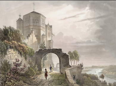 Allemagne. Gravure sur acier, gravée par A. Le Petit d´après W. H. Bartlett. 1841. Très bon état. Aquarellée à la main. 18,5x12,5cm. Montée sous passe-partout.