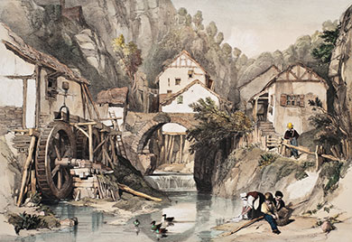 Allemagne. Lithographie de J. D. Harding. 1838. Très bon état. Aquarellée à la main. 25x16,5cm.