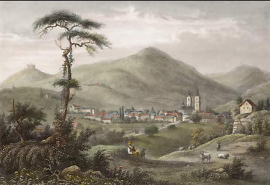 Germany. Original steel engraving, drawn by G. S. Shepherd, engraved by J. Shury. ca 1835. Good condition. Modern hand-colouring. 13,5x9,5cm. Matted.