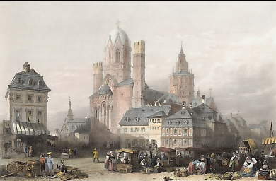 Germany. Original steel engraving drawn by W. Tombleson, engraved by J. Barker. 1832. Good condition. Modern hand-colouring. 15x9cm. Matted.
