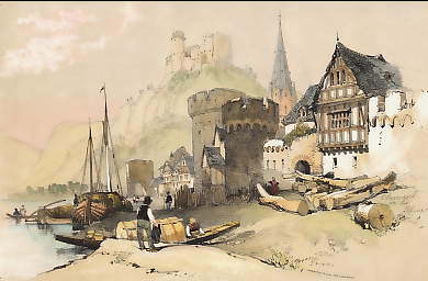 Allemagne. Lithographie tintée par T.S. Boys d´après C. Stanfield. 1838. Très bon état. Aquarellée à la main. 41x28cm. Montée sous passe-partout..