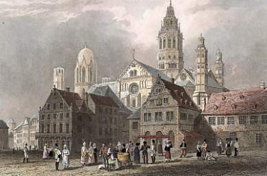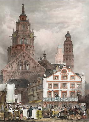 Allemagne. Gravure sur acier, gravée par W. Henshall d´après S. Prout. 1834. Très bon état. Aquarellée à la main. 15x11cm. Montée sous passe-partout.