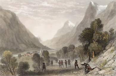 France. Gravure sur acier, gravée par R. Dawson d´après W. Brockedon. 1837. Très bon état. Aquarellée à la main. 18x12cm. Montée sous passe-partout.