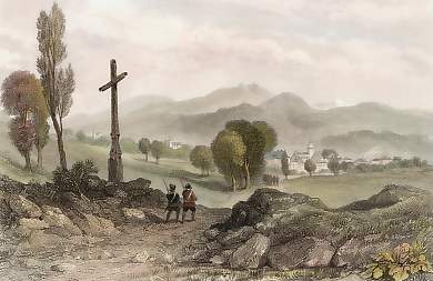France. Gravure sur acier, gravée par J. Redaway d´après W. Brockedon. 1828. Très bon état. Aquarellée à la main. 20x15cm. Montée sous passe-partout.