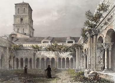 France. Lithographie couleur, gravée par E. Ciceri d´après F. Benoist. 1864. Rousseurs dans les marges. Aquarellée à la main. 32x23cm. Montée sous passe-partout.