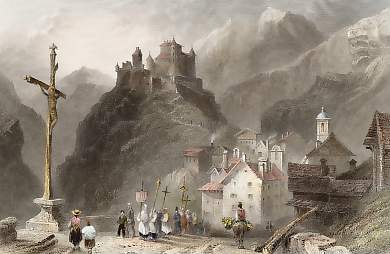 France. Original steel engraving drawn by J. D. Harding, engraved by J. T. Willmore. 1834. Good condition. Hand-coloured. 13,6x9,5cm. Ready to frame. Scan can be provided on request.