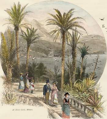 Monaco. Gravure sur bois. 1881. In-texte, imprimée au verso. Très bon état. Aquarellée à la main. 18x16cm. Montée sous passe-partout.