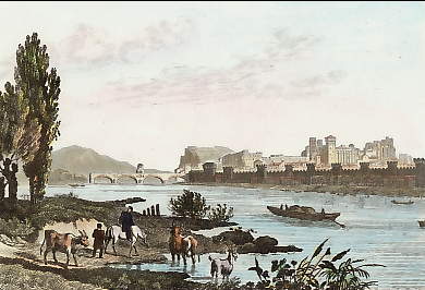 France. Lithographie gravée par C. Pegeron d´après V. Cassien. 1837. Bon état. Aquarellée à la main. 20x15,5cm. Montée sous passe-partout.