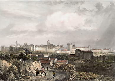 France. Gravure sur acier, gravée par R. Wallis d´après W. H. Bartlett. 1837. Très bon état. Aquarellée à la main. 17,5x11,5cm. Montée sous passe-partout.