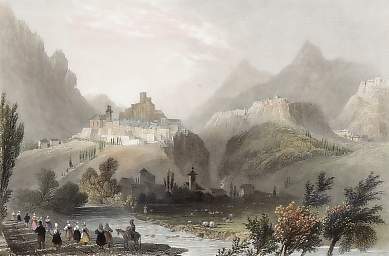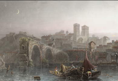 France. Gravure sur acier, gravée par C. Cousen d´après W. H. Bartlett. 1837. Très bon état. Aquarellée à la main. 17,5x10,5cm. Montée sous passe-partout.