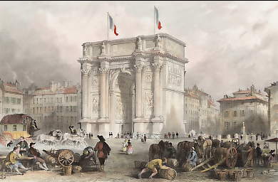 France. Gravure sur acier, gravée par S. Lacey d´après W. Brockedon. 1837. Très bon état. Aquarellée à la main. 17,5x11,5cm. Montée sous passe-partout.