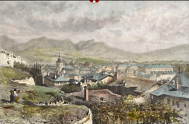 France. Gravure sur bois, gravée par Perrichon d´après H. Clerget. 1881. Très bon état. Aquarellée à la main. 22,5x15cm. Montée sous passe-partout.