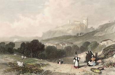 France. Gravure sur acier, gravée par E. Finden d´après J. D. Harding. 1872. Très bon état. Aquarellée à la main. 12x8cm. Montée sous passe-partout.