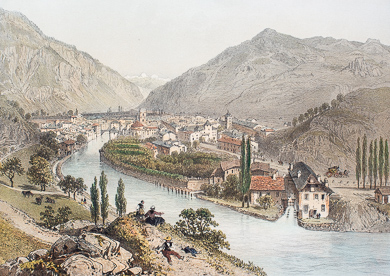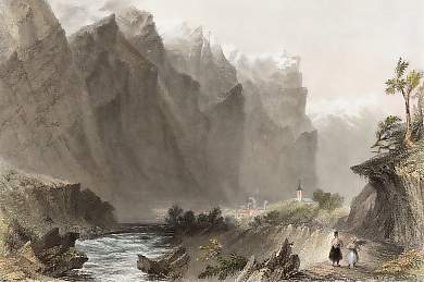 Frankreich. Gravure sur acier, gravée par S. Lacey d´après W. Brockedon. 1837. Très bon état. Aquarellée à la main. 17,5x12cm. Montée sous passe-partout.