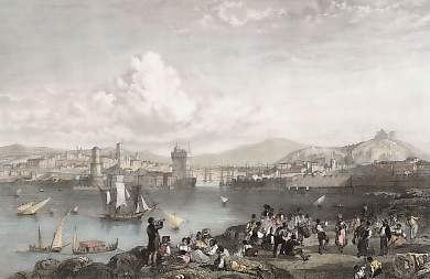 France. Gravure sur acier, gravée par W. R. Smith d´après W. Brockedon. 1837. Très bon état. Aquarellée à la main. 17,5x11,5cm. Montée sous passe-partout.