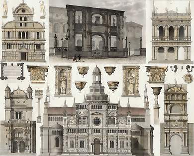 1. The Church of St. Zacharias in Venice, 2-5. The Church of Notre-Dame in Vetheuil, 6-14. Church near the Charterhouse near Pavia, 19. Portal of the Ecole des Beaux Arts in Paris, 20. Triumphal Arch of Alphonso I. in Naples.