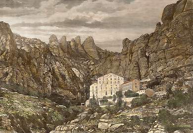 Spain. Original wood engraving drawn by P. Benoit, engraved by C. Laplante. 1878. Light foxing in the margins. Hand-coloured. 19x13cm. Matted.