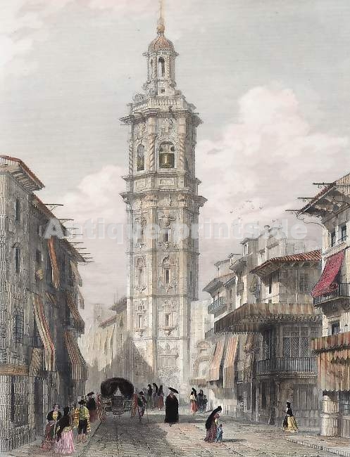 Spain. Original steel engraving drawn by J. Herbert, engraved by H. Cook 1847. Very good condition. Hand-coloured. 18,5x13,5cm. Matted.