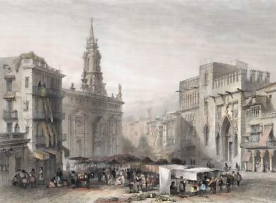 Espagne. Gravure sur acier, gravée par E. Goodall d´après David Roberts. 1855. Très bon état. Aquarellée à la main. 25x17,5cm. Montée sous passe-partout.