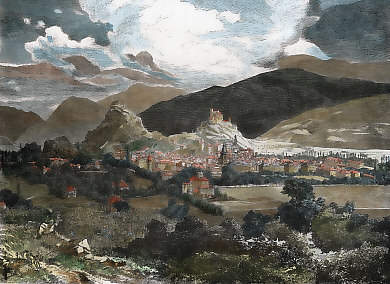 Suisse. Gravure sur bois, gravée par K. A. Niedermann d´après C. Huber. 1879. Bon état. Aquarellage ancien. 24x17cm. Montée sous passe-partout.