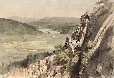 Amérique du Nord. Gravure sur bois, gravée par C. Barbant d´après G. Vuillier. 1892. Légères rousseurs dans les marges. Aquarellée à la main. 19x13cm. Montée sous passe-partout.