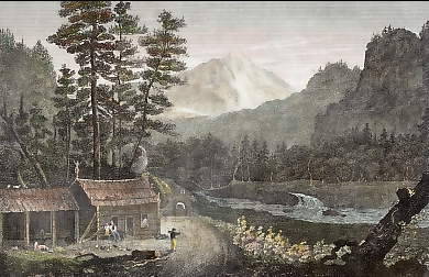 Amérique du Nord. Gravure sur acier, gravée par Grünewald d´après Trollope. ca 1850. Bon état. Aquarellée à la main. 15x10cm. Montée sous passe-partout.