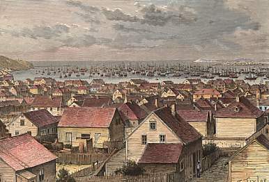 Bermuda. Original wood engraving drawn by Slom, engraved by Maynard. 1878. Very good condition. Modern hand colouring. 19x13cm. Matted.