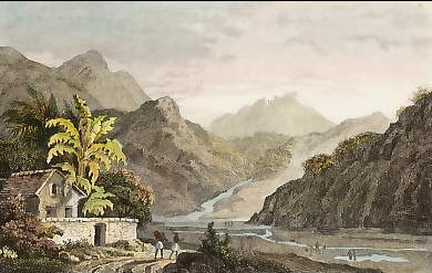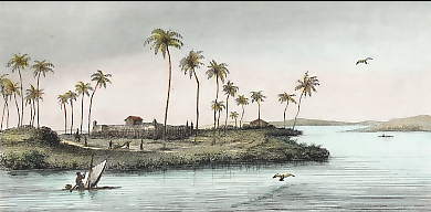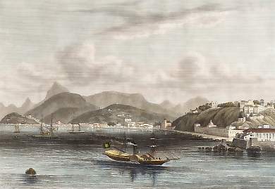 Brazil. Original steel engraving drawn by Vernier, engraved by Thibeault 1838. Light foxing in the margins. Hand-coloured. 13,5x9,5cm. Matted.