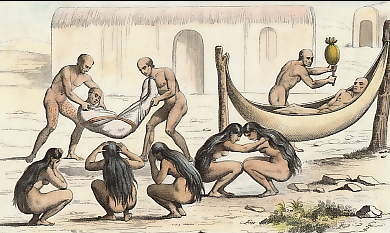 Brésil. Gravure sur acier, gravée par Lesueur d´après Debret. 1838. Très bon état. Aquarellée à la main. 14,5x9cm. Montée sous passe-partout.
