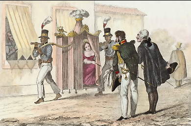 Brazil. Original steel engraving drawn by H. Lalaisse, engraved by S. Cholet. 1838. Good condition. Hand-coloured. 14x8,5cm. Mounted.