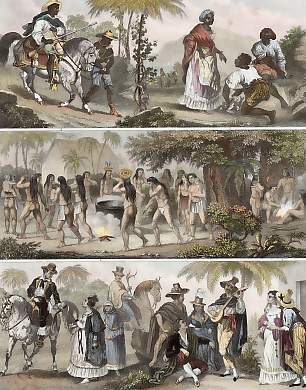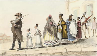 Brazil. Original steel engraving drawn by Debret, engraved by Chaillot. 1838. Very good condition. Hand-coloured. 13x9cm. Matted.