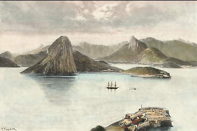 Brésil. Gravure sur bois dessinée par T. Taylor. 1894. Bon état. Aquarellée à la main. 18,5x12,5cm. Montée sous passe-partout.