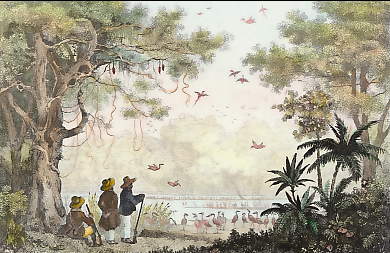 Brésil. Gravure sur acier, gravée par Laderer d´après Vanderburch. 1838. Très bon état. Aquarellée à la main. 13,5x9cm. Montée sous passe-partout.