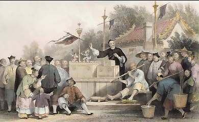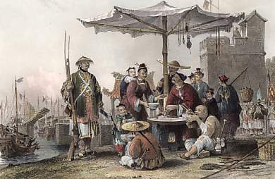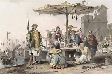 China. Original wood engraving, engraved by W. Joyce after E. Breton. 1846. Very good condition. Hand-coloured. 16x10,5cm. Matted.