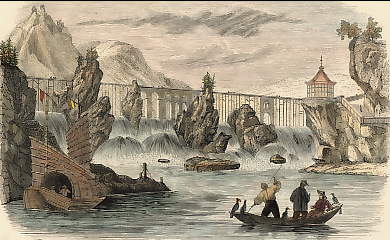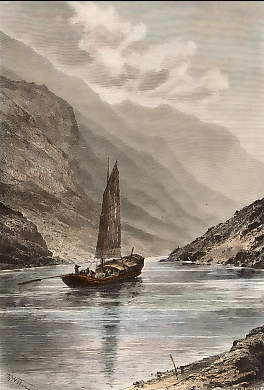 China. Original steel engraving drawn by Demoraine, engraved by Pardinel. 1859. Very good condition. Hand-coloured. 15x9,5cm. Matted.