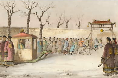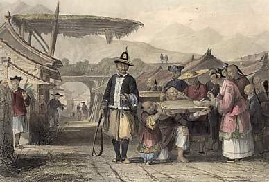 China. Original wood engraving, engraved by A. Kohl after P. Langlois. 1882. Very good condition. Hand-coloured. 19x13cm. Matted.