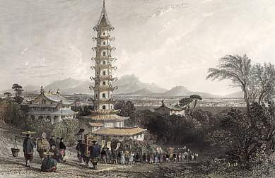 China. Original steel engraving drawn by T. Allom, engraved by G. Paterson. ca 1850. Good condition. Hand-coloured. 18x12,5cm. Matted.