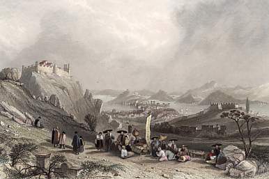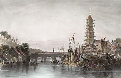 China. Original steel engraving drawn by T. Allom, engraved by W. Wetherhead. 1843. Very good condition. Hand-coloured. 18,5x12cm. Matted.