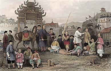 China. Original steel engraving, drawn and engraved by Lechard (after Allom). 1853. Very good condition. Hand-coloured. 14x10cm. Matted.
