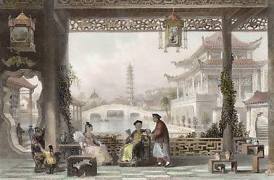 China. Original steel engraving, engraved by A. H. Payne after C. Graham. ca 1840. Light foxing in the margins. Old hand-colouring. 16,5x11cm. Matted.