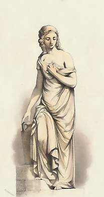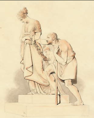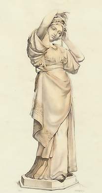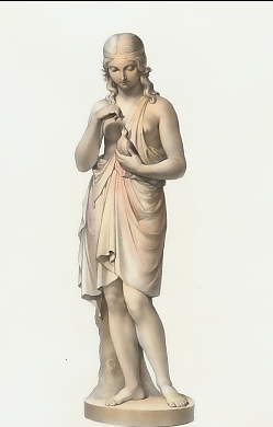 Mythology. Original steel engraving, engraved by A. H. Payne after J. G. Lough. ca 1850. Very good condition. Hand-coloured. 17,5x8cm. Matted.